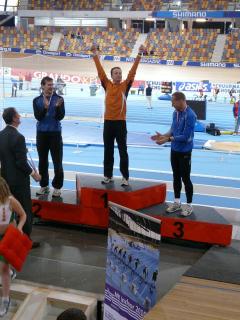 Mijn verbazing was dan ook groot toen beide concurrenten faalden bij de eerste poging. De tweede poging haalden ze wel allebei, maar opeens was ik leider in de wedstrijd. Toen werd de wedstrijd voor de tweede maal stilgelegd. Het was tijd voor de 60 meter finales, en deze kruisen de hoogspring aanloop. Na een klein kwartiertje konden wij verder met 1.83. Blijkbaar was deze tweede onderbreking teveel van het goede voor de overgebleven hoogspringers. De 1.83 werd niet meer gehaald en daarmee nam ik het bezit van de gouden medaille.
